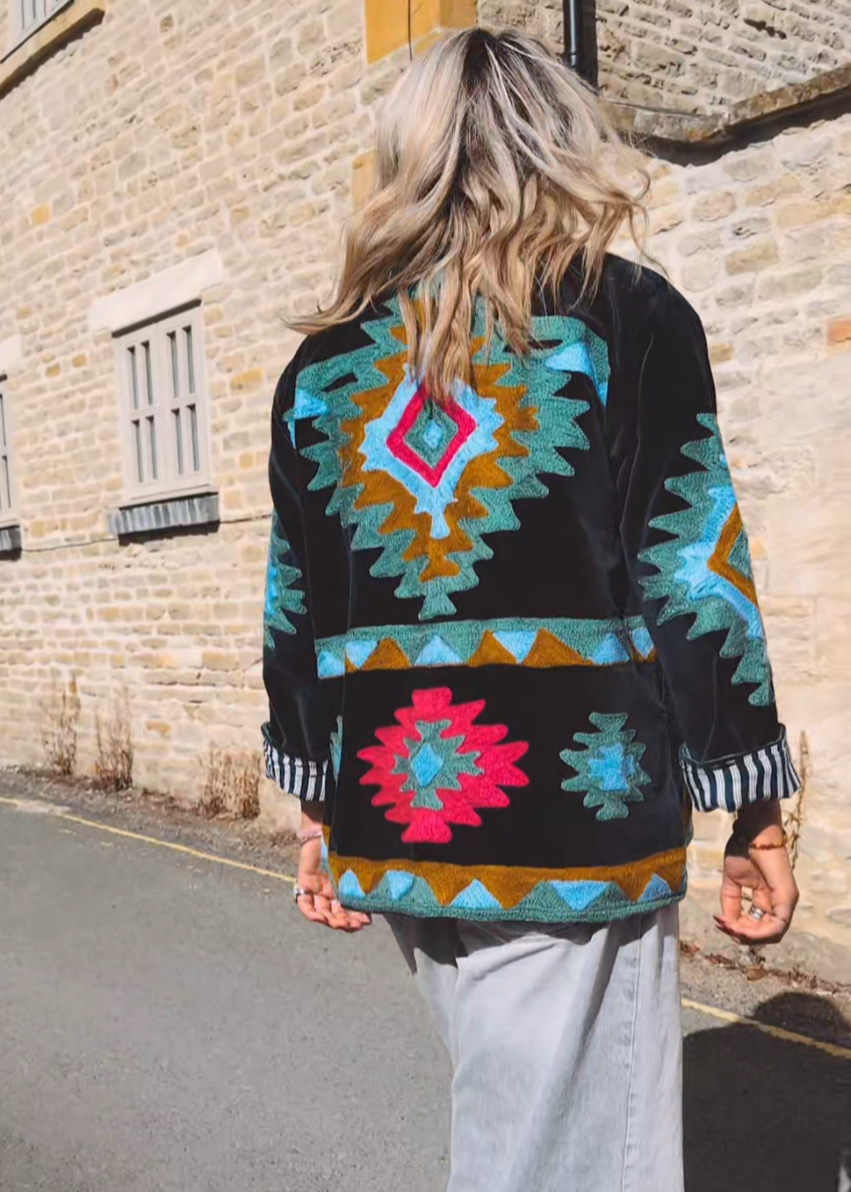 ~ Please note, each jacket is handmade so there may be ever so slight variations in the hand-embroidered pattern