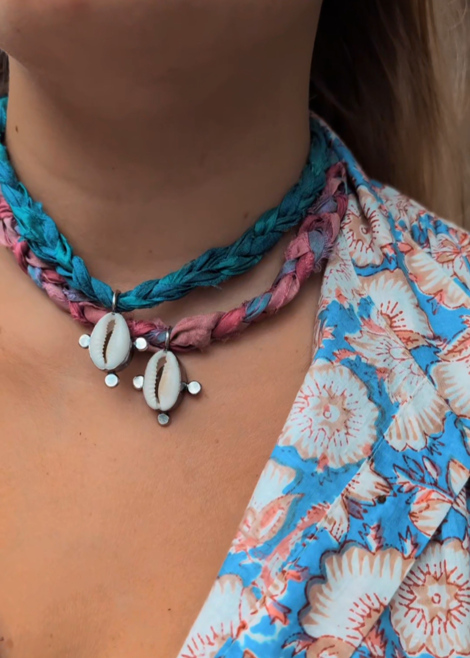 ~Handcrafted to look like they've surfed a thousand waves, each Saree Surf has been handwoven using recycled saree silks, each adorned with its very own cowrie shell, handmade into a mermaid pendant using fine and sterling silver...rad dude!