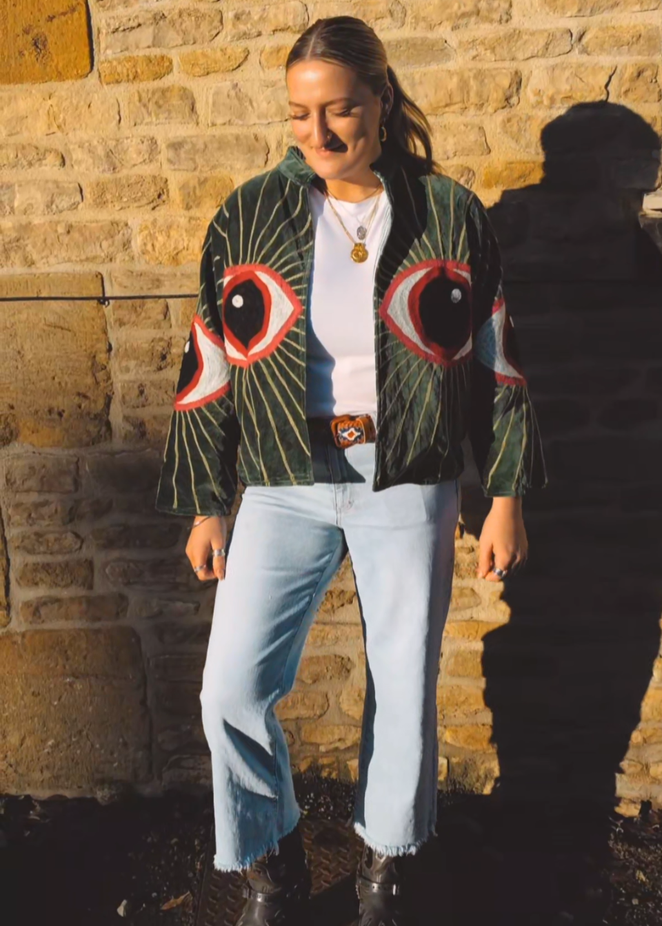 Introducing the Echo & Dust Evil Eye jacket, hand-embroidered on beautiful rich velvet, each jacket embodies the bohemian and wild Echo & Dust spirit. Created to be paired with jeans and cowboy boots, or thrown over a flowing bohemian dress...simply iconic and pure cool chic!