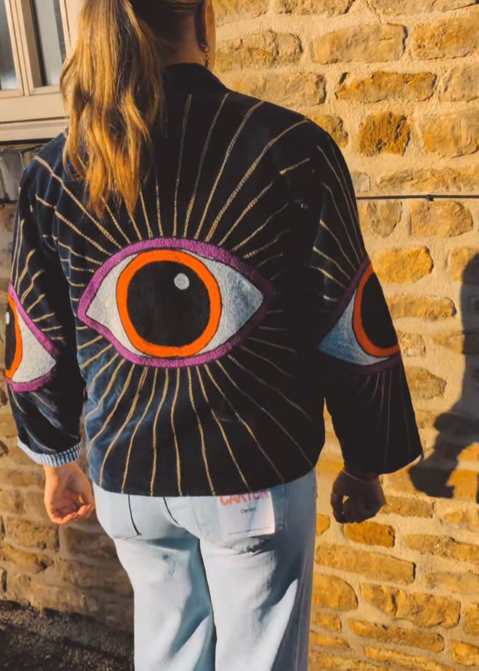 Introducing the Echo & Dust Evil Eye jacket, hand-embroidered on beautiful rich velvet, each jacket embodies the bohemian and wild Echo & Dust spirit. Created to be paired with jeans and cowboy boots, or thrown over a flowing bohemian dress...simply iconic and pure cool chic!