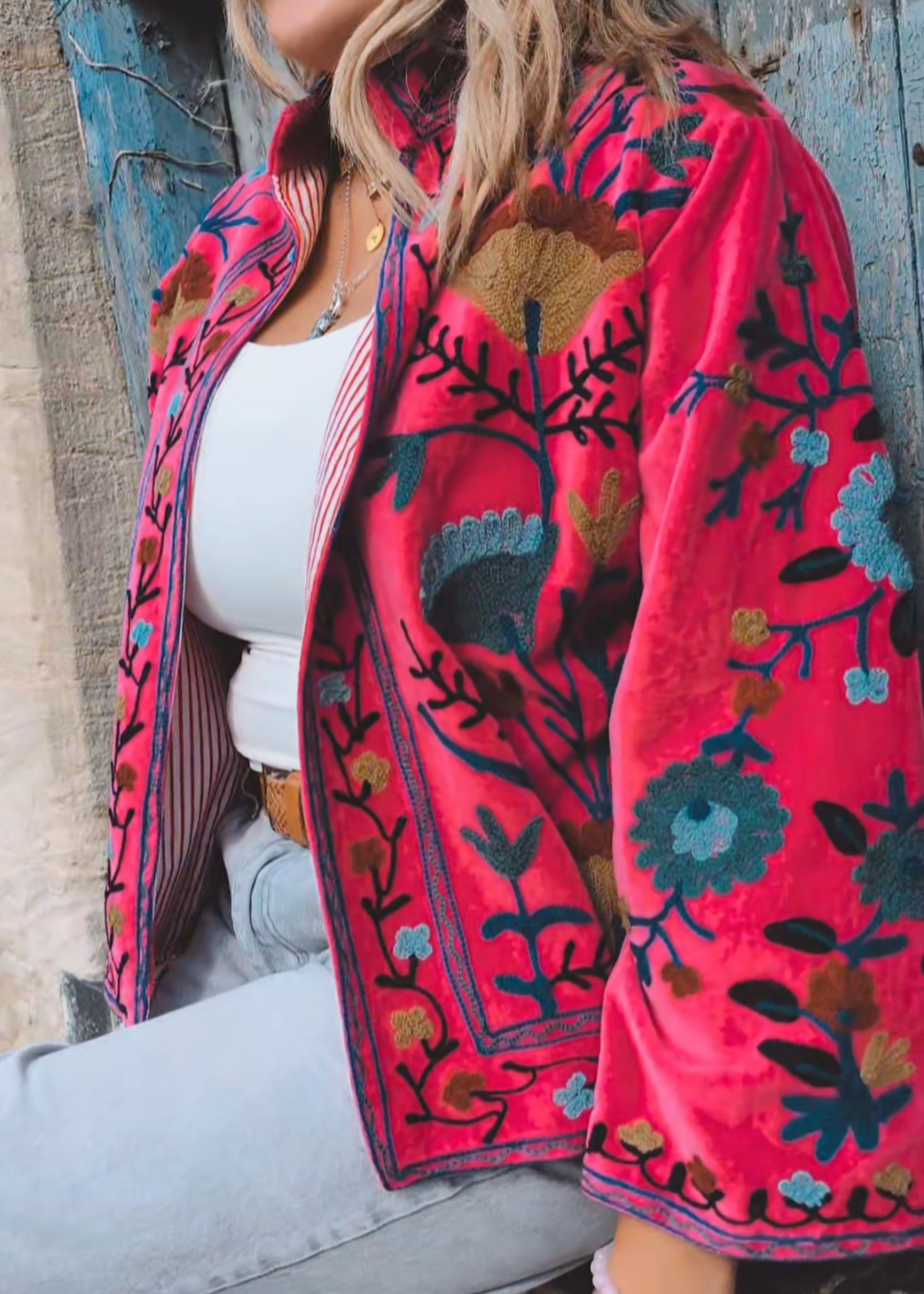 ~ Please note, each jacket is handmade so there may be ever so slight variations in the hand-embroidered pattern