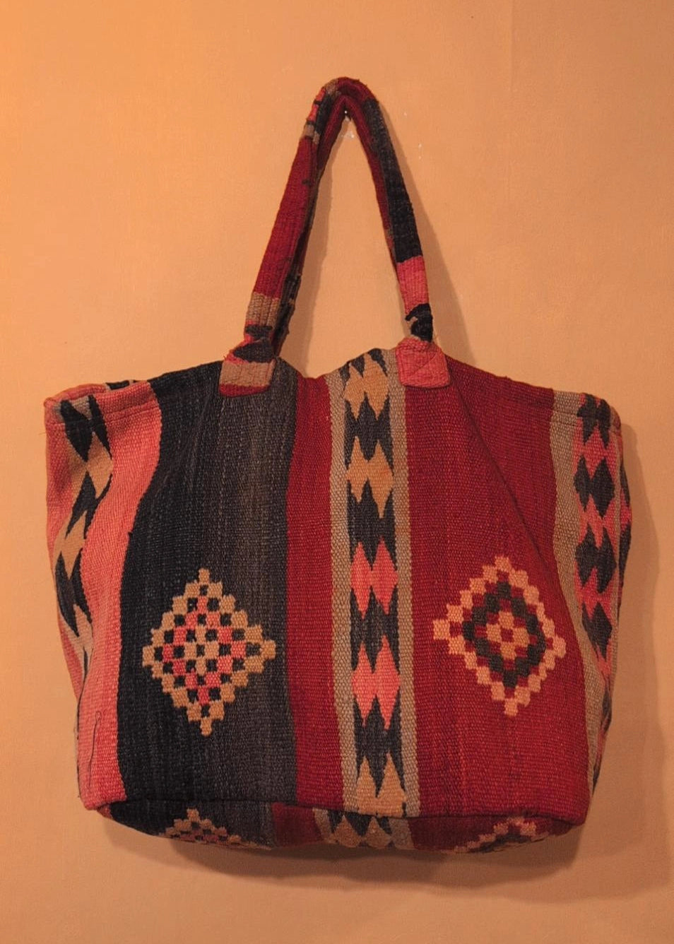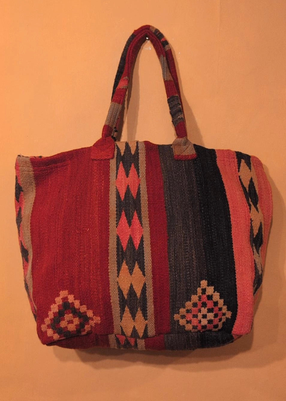 Each of our bags has been hand-picked by Kate for their unique colour and pattern...Handcrafted from reclaimed Berber woven wool, each one tells a rich story through colour, texture and lineage.