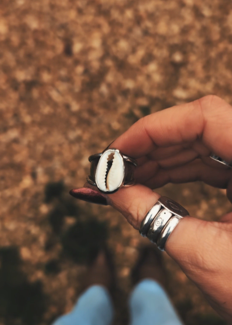 ~Dreamy Mermaid Cowrie shell, mounted atop one of my handcfrated statement bands to just make it that little more badass...