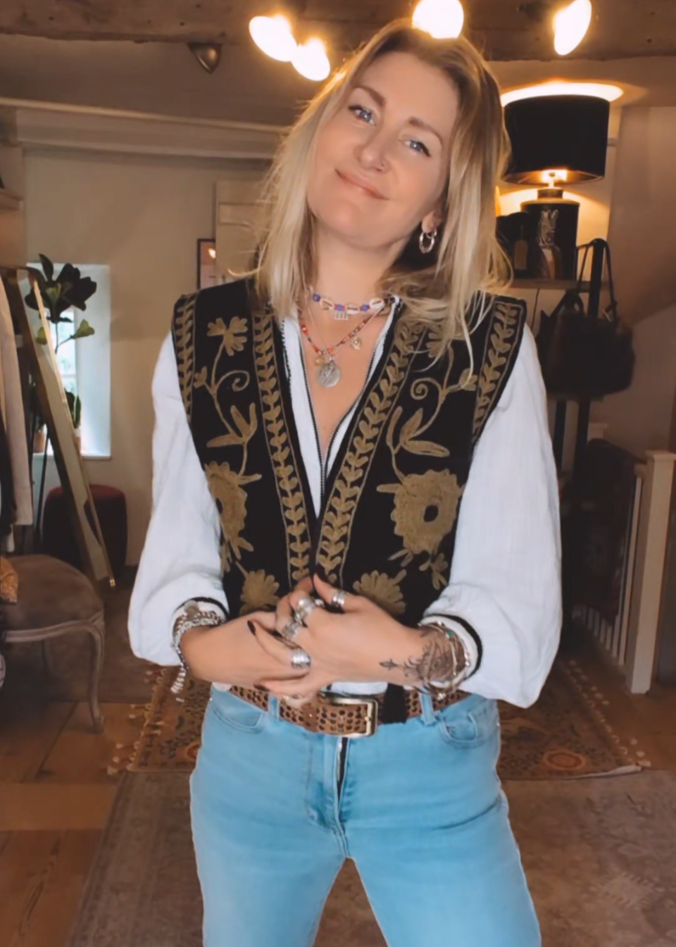 The ultimate dreamy, boho addition to any wardrobe...the Stevie Gilet...crafted from hand-embroidered velvet by artisans in India, each gilet is a celebration of colour and free-spirit dressing. Perfect paired with a boho blouse, jeans and a pair of cowboy boots, or thrown over a flowing bohemian dress...simply iconic and pure cool chic!